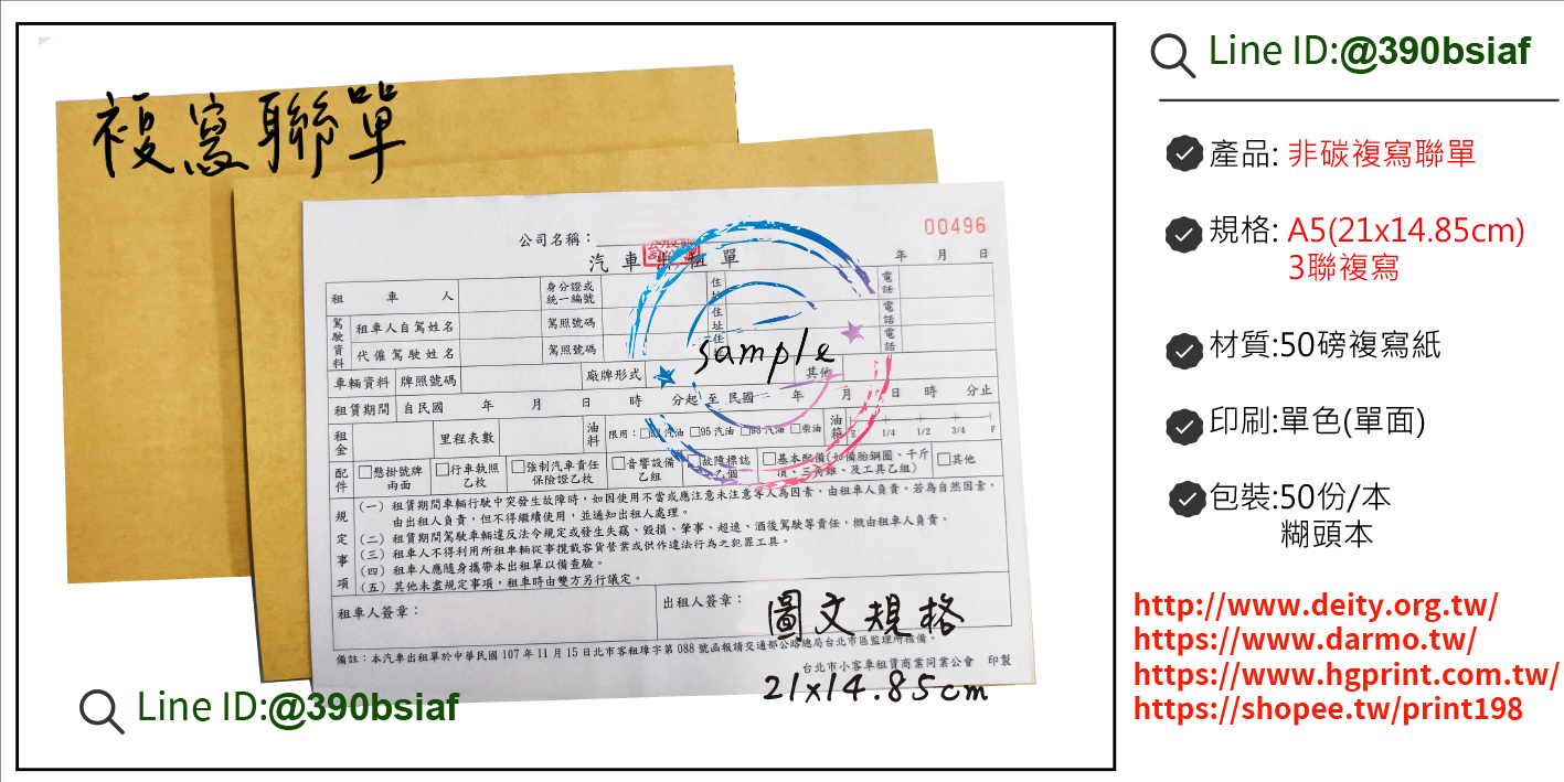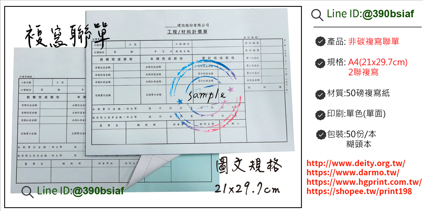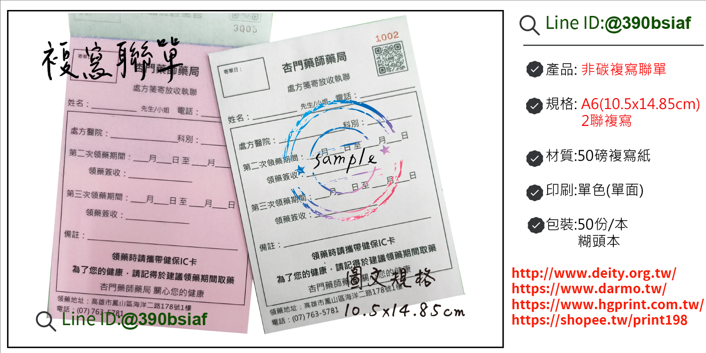 印刷|單面單色 材質|50非碳複寫紙(利百代)