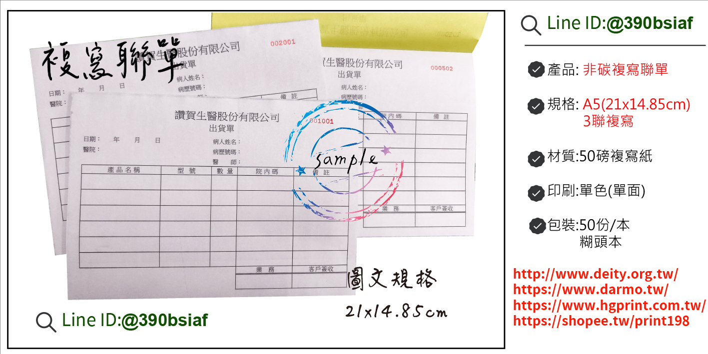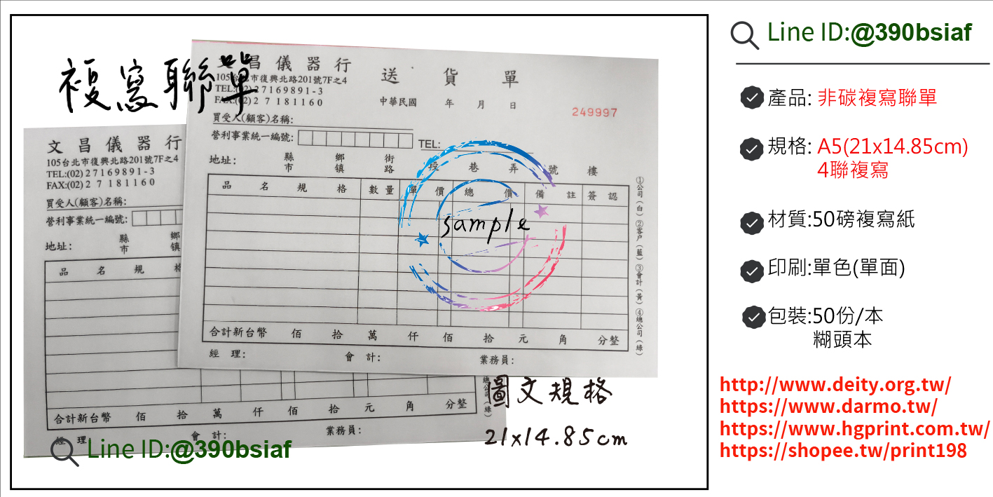 A4/A5/32開-聯複寫聯單-2聯單/3聯單/4聯單/5聯單(依需求)
